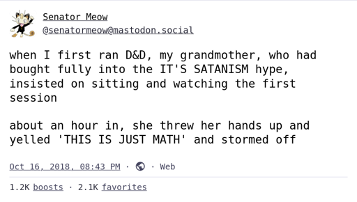 arrow-up11arrow-down1imageSatanic Mathplus-squarepawb.socialThefuzzyFurryComrade@pawb.social · 10 months agomessage-square0linkfedilink