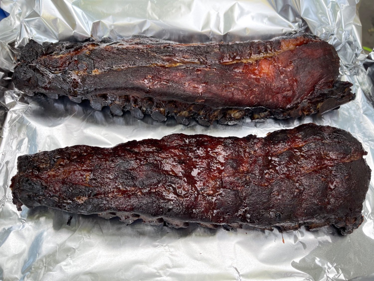 I used that as a seasoning. I use a char-broil deluxe electric digital smoker. They cooked bare for 4 hours at 250 and then I wrapped them in foil to rest for 20 minutes or so.