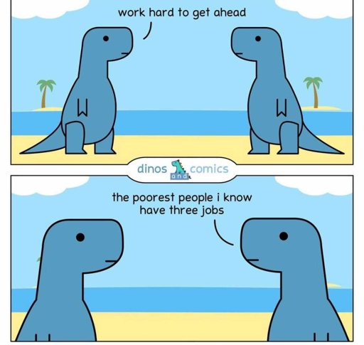 Just practically speaking, hard work alone doesn’t cut it. You need to figure out how to get enough money out for the labor you’re putting in. Goes without saying, for many people that’s impossible, especially with no financial wiggle room. On top of whatever inequalities are inherent to capitalism, the government’s also gone out of their way to completely rig the rules of the game.