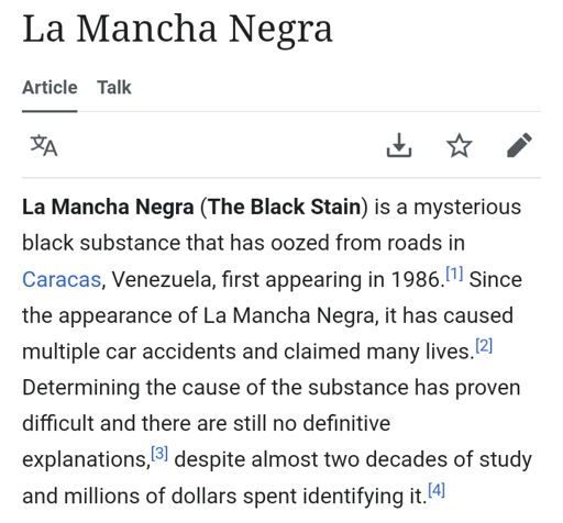arrow-up1128arrow-down1imageThere is a mysterious black slime in Venezuela called "La Mancha Negra"lemmy.worldThe Picard Maneuver@lemmy.world to interestingasfuck@lemmy.world · 6 months agomessage-square24linkfedilinkfile-text
