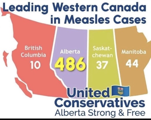Notice how the ndp and liberal controlled provinces have lower cases of Measles such as BC, NB and NL.