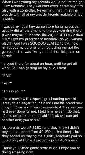 Stories like this always make me think: that dude probably rarely thinks about what he did that day, but to the person writing the story it’s a treasured memory. We do countless kindnesses like this, big and small, then never think about them again or know how important they were to the person receiving them. It might be paying for somebody’s groceries, letting them go first when they’re in a hurry, or something you said without realizing the impact your words made.