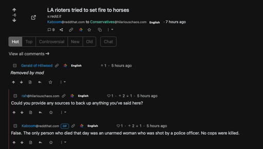 minus-squareSaik0@lemmy.saik0.comlinkfedilinkEnglisharrow-up3·6 months agoNo idea what they’re implying either. I downvoted them because I didn’t think the comment actually further discussion and specifically shuts down any meaningful discussion. Apparently that is “some interesting attention”. //shrug