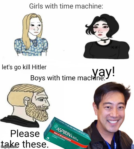 Honestly, Hitler’s on everyone else’s time travel hitlist. I’d go back and get the guy that put LED headlights into cars. I am so sick of getting not just blinded, but migrained after a short night drive in the city.