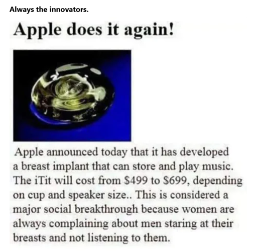 Mickey7@lemmy.world to Lemmy Shitpost@lemmy.world · 6 months agoAnother creative solution from APPLElemmy.worldimagemessage-square24linkfedilinkarrow-up1290arrow-down151
