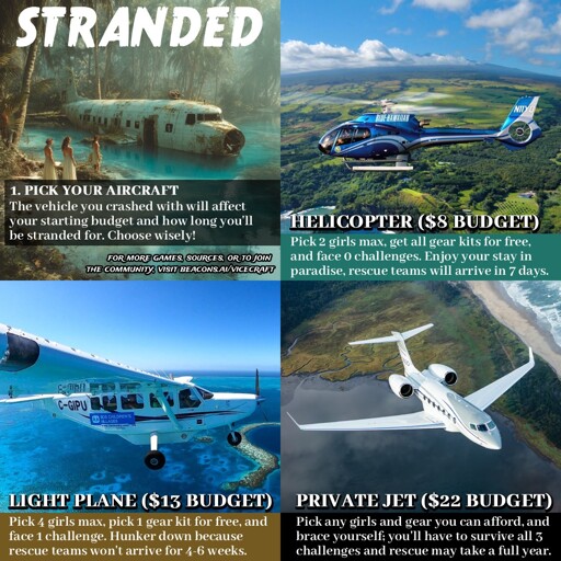 - Light Plane: 13$ budget, 4 girls max, 1 free gear kit, 1 challenge, 4-6 weeks.