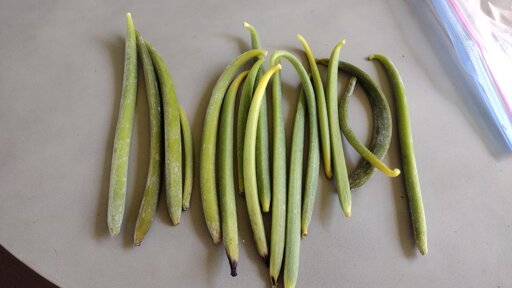 This year’s vanilla harvest starting, and with the hot weather, moving fast. This year I’ll harvest around 100 pods which I’ll process into cured vanilla over the next few months.