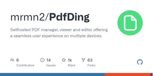 PdfDing is a selfhosted PDF manager, viewer and editor offering a seamless user experience on multiple devices. You can find the repository here. As always I would be quite happy about a star and you trying out the application.
