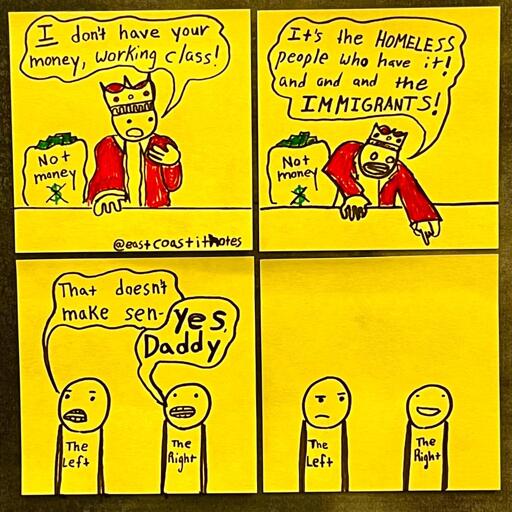 This might be a left vs right comic, but the issue doesn’t matter in the end because capitalism is going to fuck us all over.