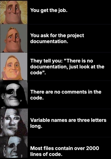 I literally told my boss that I was just going to rebuild the entire pipeline from the ground up when I took over the codebase. The legacy code is a massive pile of patchwork spaghetti that takes days just to track down where things are happening because someone, in their infinite wisdom, decided to just pass a dictionary around and add/remove shit from it so there is no actual way to find where or when anything is done.