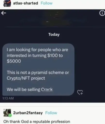 - Sell whatever is left from you 3 day crack binge with a healthy profit margin