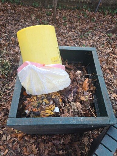 It is the 5 gal bucket I use for kitchen scraps. In the winter I line it with a garbage bag so I don’t have yo wash the bucket in the cold.