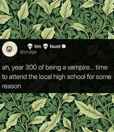 Maybe it’s a cultural thing. Like vampires traditionally go to highschool at 300.