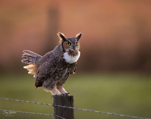 Bathed in the last light of day, a gorgeous Great Horned Owl pauses on a fence post before night takes over ! Florida, December 2025