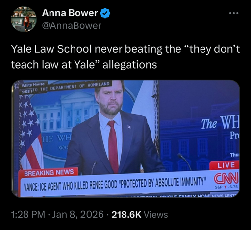The law is extremely clear in this regard - the ICE dude murdered a person for no reason. The rules on the use of deadly force literally use a moving car as an example of when not to use deadly force - as long as there are “other defence options, such as moving out of the way”.