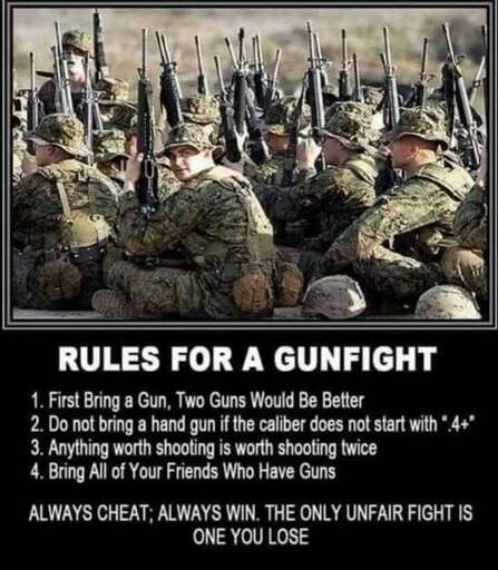 Sine_Fine_Belli@lemmy.world to Lemmy Shitpost@lemmy.world · 27 days agoRules for a gun fightlemmy.worldimagemessage-square47linkfedilinkarrow-up1332arrow-down131file-text