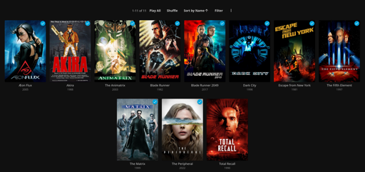 Hey, so this is the list of movies on my local media server which are tagged as “cyberpunk”. I am looking for suggestions on more movies I should add to this list. Cheers,