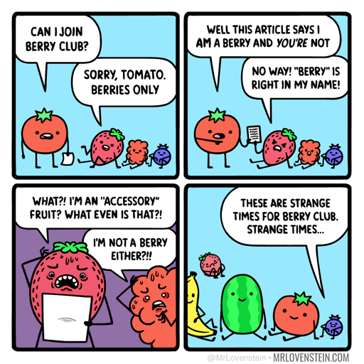 I don’t know who decided to classify gourds, melons, and citrus fruits as berries, but I imagine they had mischief in mind…