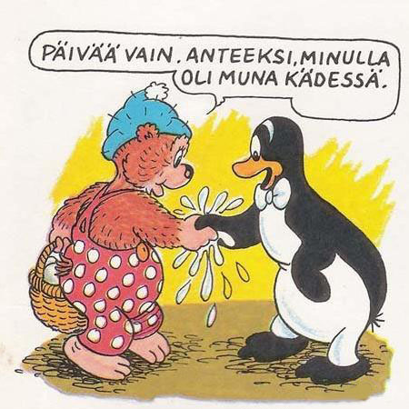 This comic is only a mediocre fit here, but I thought it worth posting just for some cultural fun. It’s originally a Danish comic called “Rasmus Klump.”