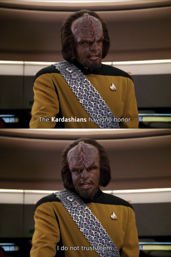 The first time I heard of Keeping Up with the Kardashians, I was browsing a cable digital guide and misread it as Keeping Up with the Cardassian. I was immediately disappointed.